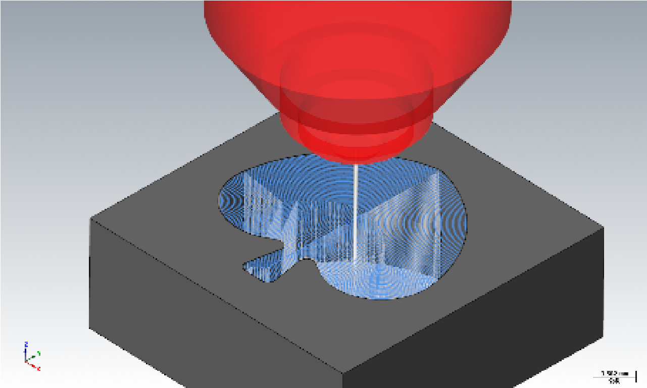 支援線切割去芯切割,以建立中空口袋加工刀具路徑而不會留下殘料。